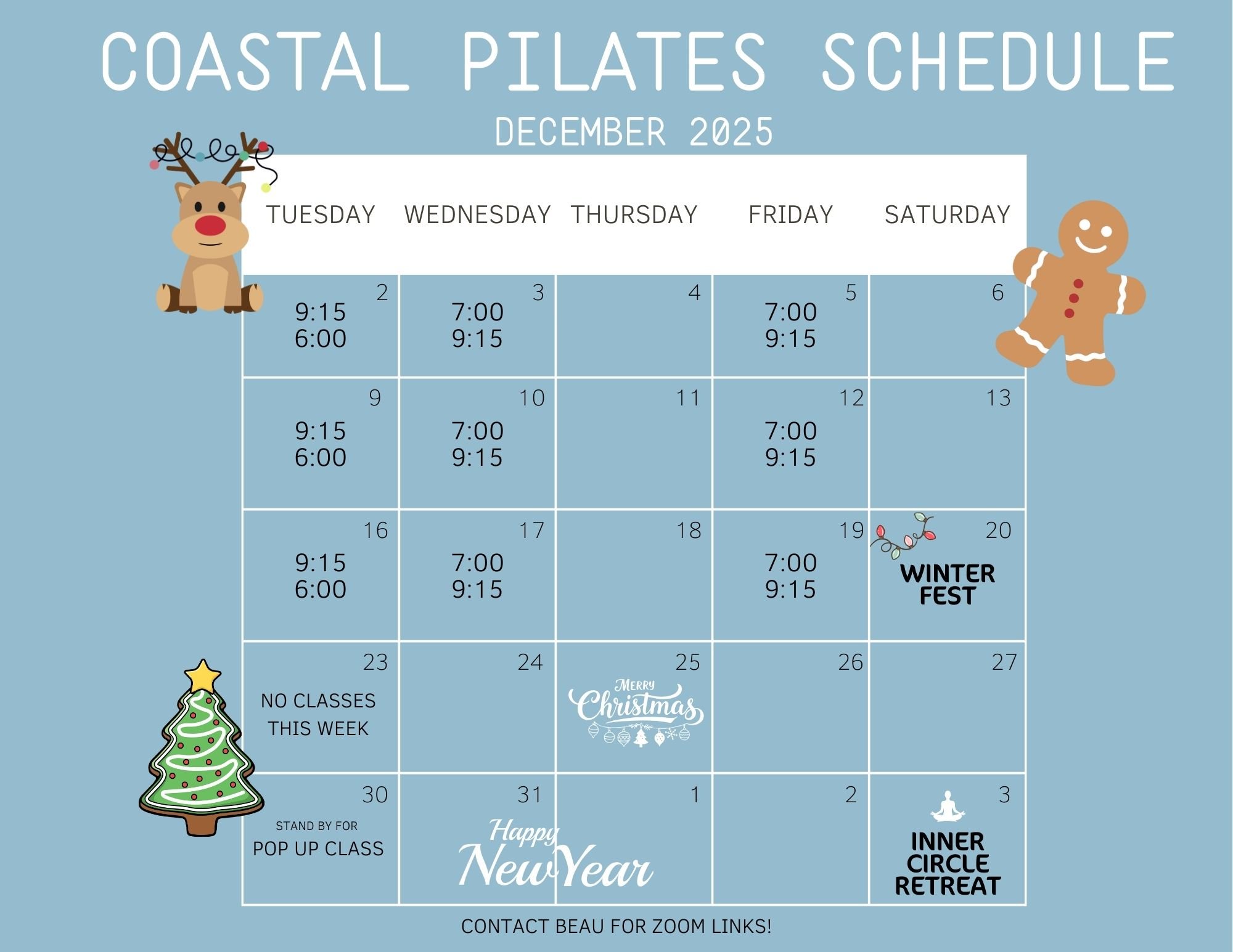 Each class begins with a brief stretch and breathwork, and ends with a relaxing stretch.